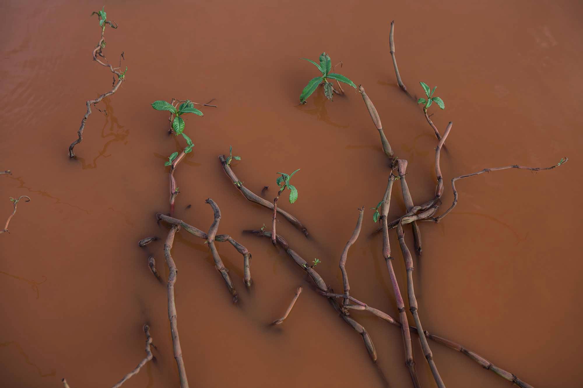 Menschen, Tiere, Häuser, Autos – alles in der Bahn der Schlammlawine wird mitgerissen. 19 Menschen, Bewohner von Bento Rodrigues und Arbeiter aus dem Tagebau, sterben. Als der allesverschlingende Abraum weiterwalzt, bleibt ein bizarres Ödland zurück, wo kurz zuvor noch ein Dorf zwischen grünen Hügeln und Wiesen war.