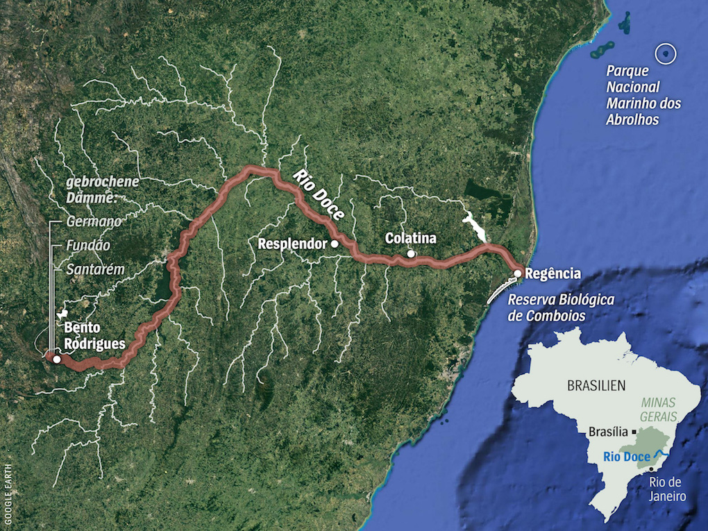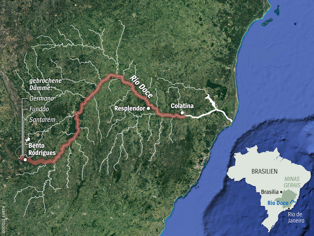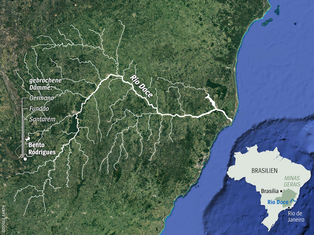 Der Tagebau wird von der Bergbaugesellschaft Samarco betrieben. Samarco gehört der britisch-australischen Firma BHP Billiton und dem brasilianischen Konzern Vale, dem größten Eisenerz-Produzenten der Welt.Keine Sirene ertönt, keine Warnung geht an die umliegenden Siedlungen. Wenige Minuten später erreicht die toxische Lawine das Bergarbeiterdorf Bento Rodrigues.