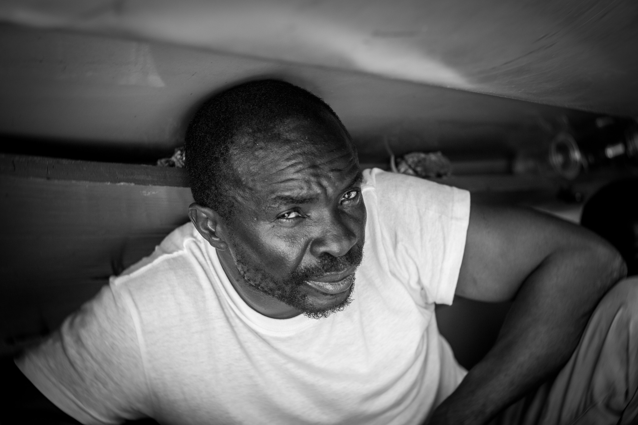 Anyasodar Um Cukusu, 42, aus Nigeria: „Ich war im Bergbau tätig. Dann kam Boko Haram und bombardierte das ganze Gebiet. Ich habe alles verloren. Zwei meiner Töchter starben im Bombenhagel. Wir mussten fliehen. In Libyen hat mir die Polizei in den Rücken geschossen. Wovon ich träume? Meine Kinder sollen eine gute Ausbildung bekommen. Wenn ich es nach Deutschland schaffe, will ich Geld verdienen und es ihnen schicken.“