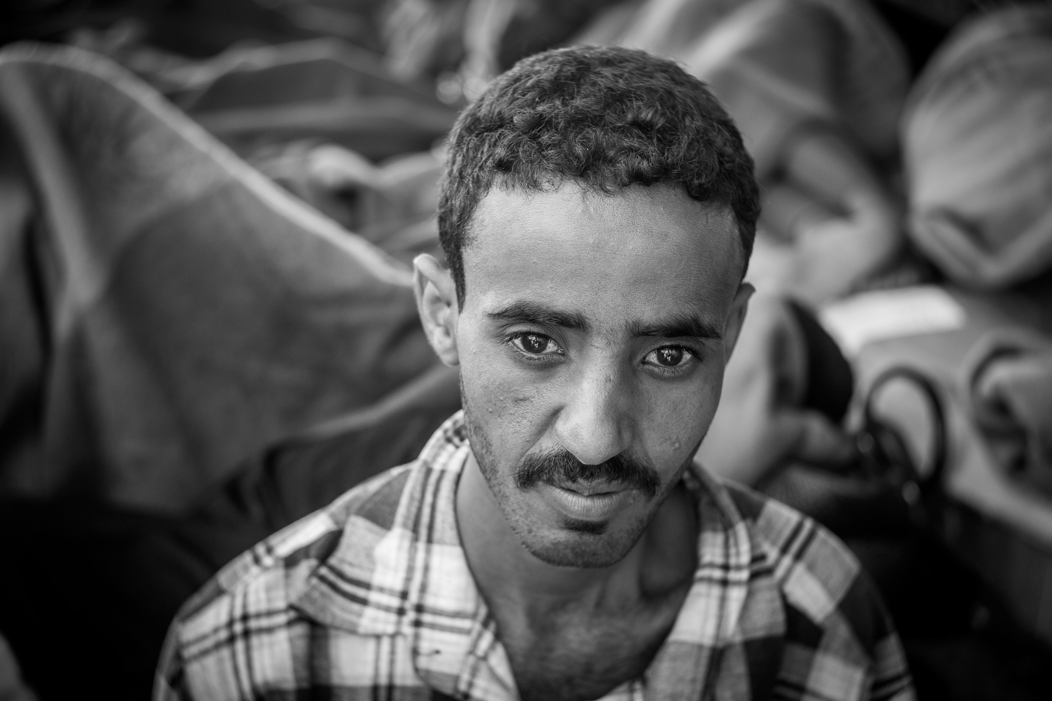 Fradhin Ali, 20, aus dem Sudan: „Wir sind nicht frei im Sudan. Die Regierung unterdrückt, man darf nicht seine Meinung sagen, sonst sperren sie dich ein. Also ging ich nach Libyen. Dort gibt es keine Polizei, keine Regierung. Jeder, der eine Waffe hat, ist die Regierung. Ich wurde versklavt, musste auf Baustellen arbeiten. Schließlich konnte ich weglaufen. Für den Platz im Gummiboot habe ich 1000 Dollar gezahlt.“