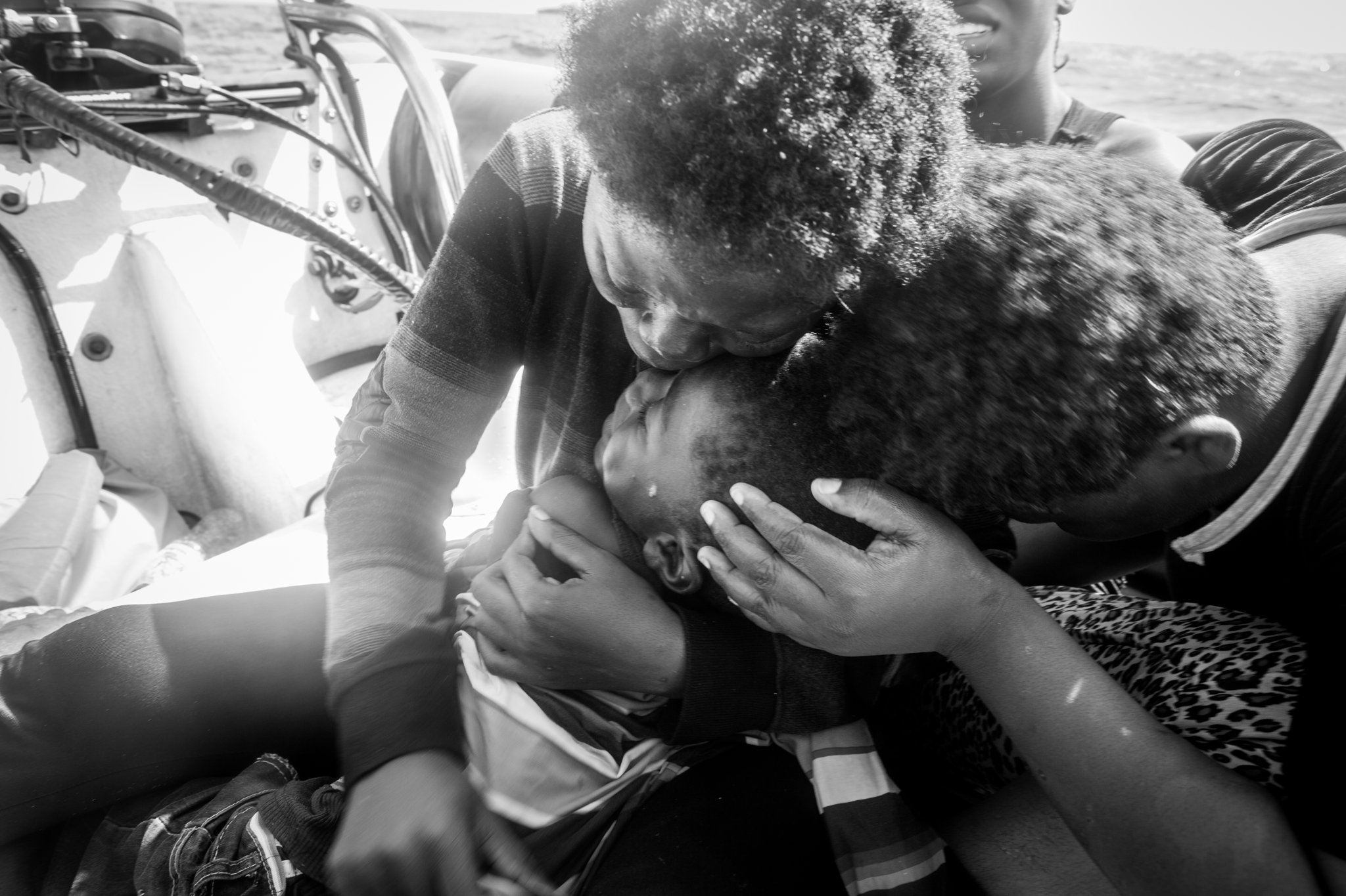 Jane aus Nigeria: „Ich bin mit meinen drei Kindern vor Boko Haram geflohen. Es ist so schwer, mit ihnen auf eine so gefährliche Reise zu gehen. Bevor wir in die Schlauchboote einstiegen, hatte ich natürlich große Angst. Aber unser Leben ist in Gottes Hand. Wenn er will, dass wir überleben, überleben wir.“